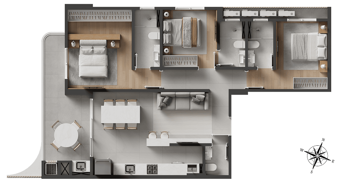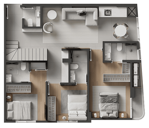 2 ou 3 dormitórios (com opções de 1 a 3 suítes)