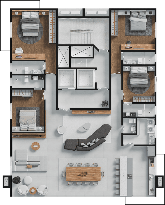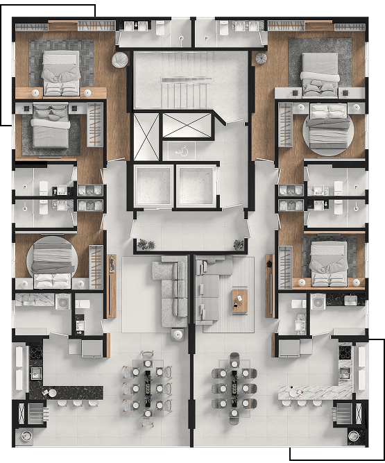 2 Apartamentos por andar, com opção de andar exclusivo.